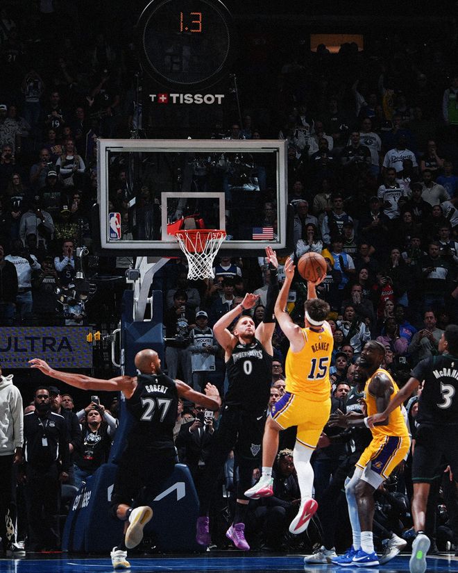 湖人队奥斯汀·里夫斯压哨绝杀,粉碎森林狼队反扑希望