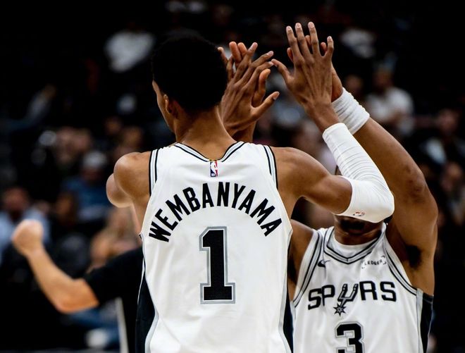 北京时间11月3日,NBA常规赛继续进行,马刺客场挑战太阳。新赛季开打快两周时间,西部只剩下两支球队保持不败,雷霆开局7连胜,以及马刺开局5连胜。在球队后场核心福克斯长时间养伤的情况下,马刺新赛季的崛起让人意外,但马刺前5场比赛,百回合净效率值是+13.3,高居联盟第一。作为球队绝对核心,文班亚马场均30.2分14.6篮板3.4助攻4.8盖帽,带着卡斯尔+瓦塞尔+哈珀多点开花。文班亚马接受采访时表示,我们不是凭空拿下5连胜的,付出巨大努力,希望保持下去。此外文班亚马在社交平台也发文,还有77场!