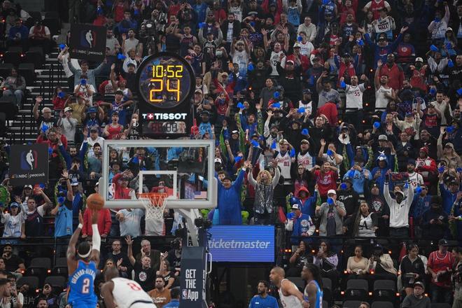 下半场易边再战,第三节上来亚历山大开始发力,一人连砍7分,哈登造多特三分犯规,巴图姆三分命中,快船这边邓恩和琼斯防守抢断很凶,哈登多次助攻队友得分。亚历山大突破打进反超比分。琼斯也被三分犯规,罚球追平。但雷霆外线开了,科林斯造杰林威阻挡犯规罚球。哈登下去以后,雷霆内外开花,但大洛三分两连击死死咬住。不过雷霆又是连续两记三分,三节结束94-86反超8分。